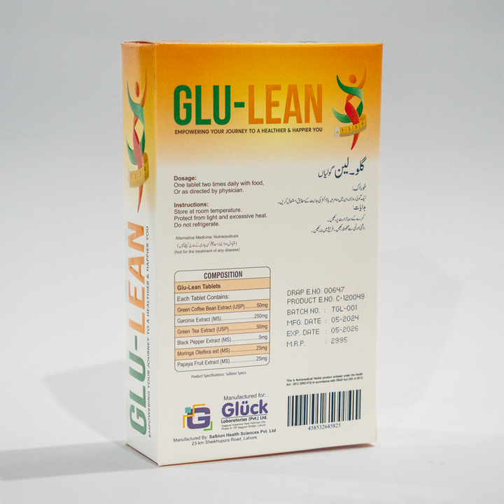 Introducing Glu-Lean Tablets, your trusted ally in natural weight management. Crafted with potent plant-based elements, each tablet embodies organic excellence. Manufactured to rigorous GMP standards and approved by DRAP, our 30-tablet pack offers a discreet yet effective solution for your wellness journey. Embrace a halal-certified formula designed to support your goals with integrity and efficacy.